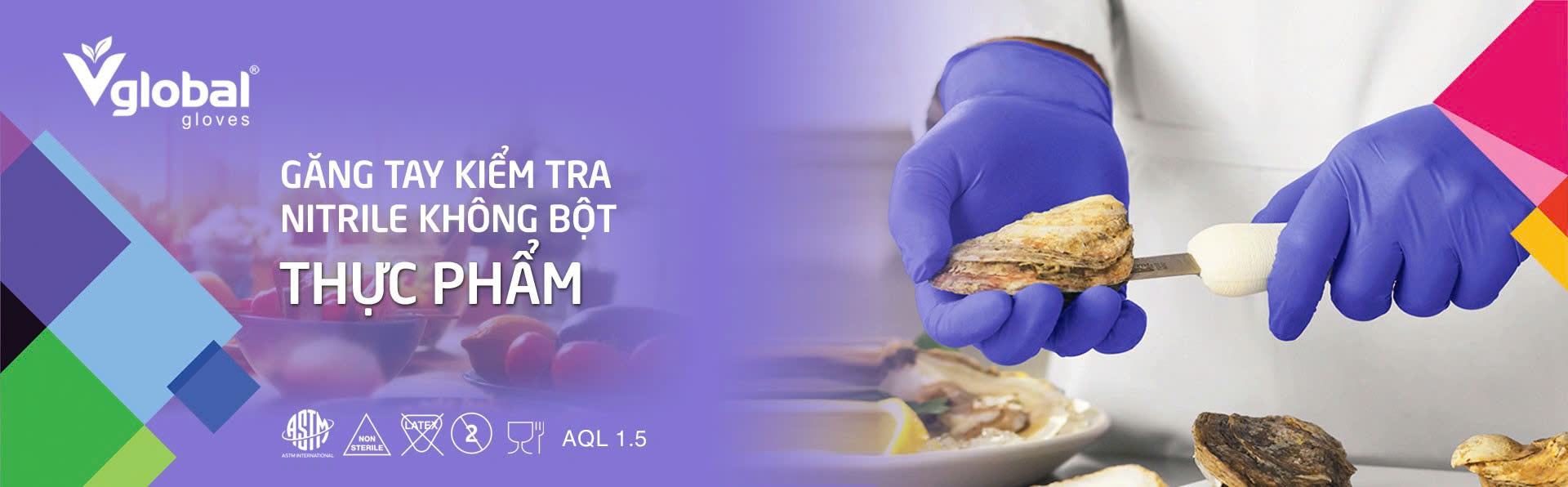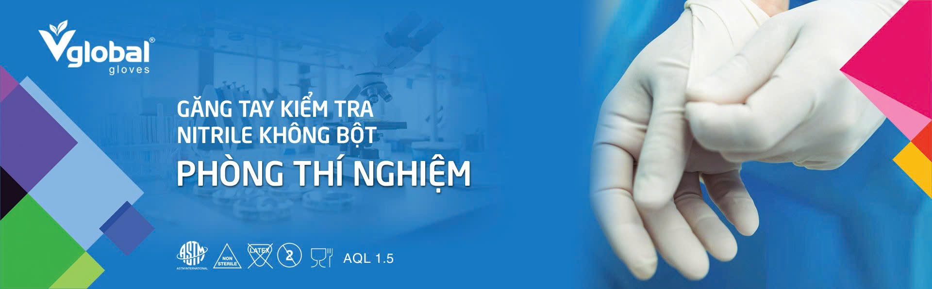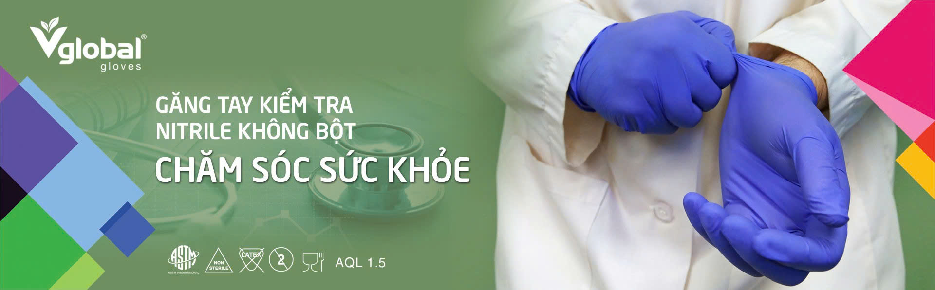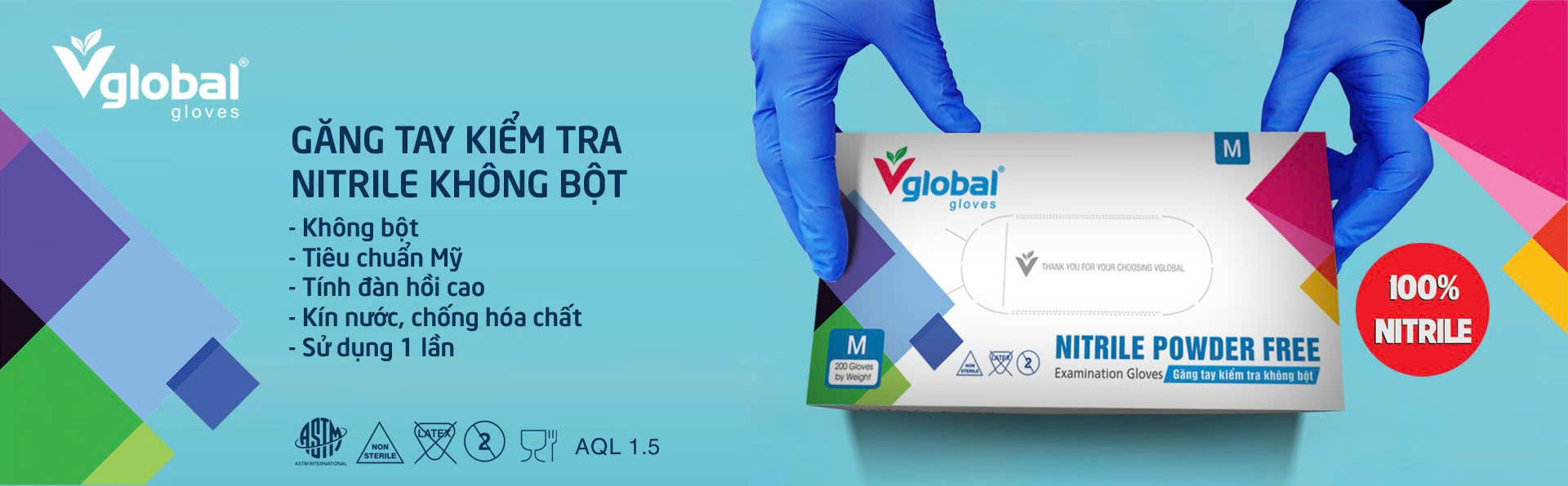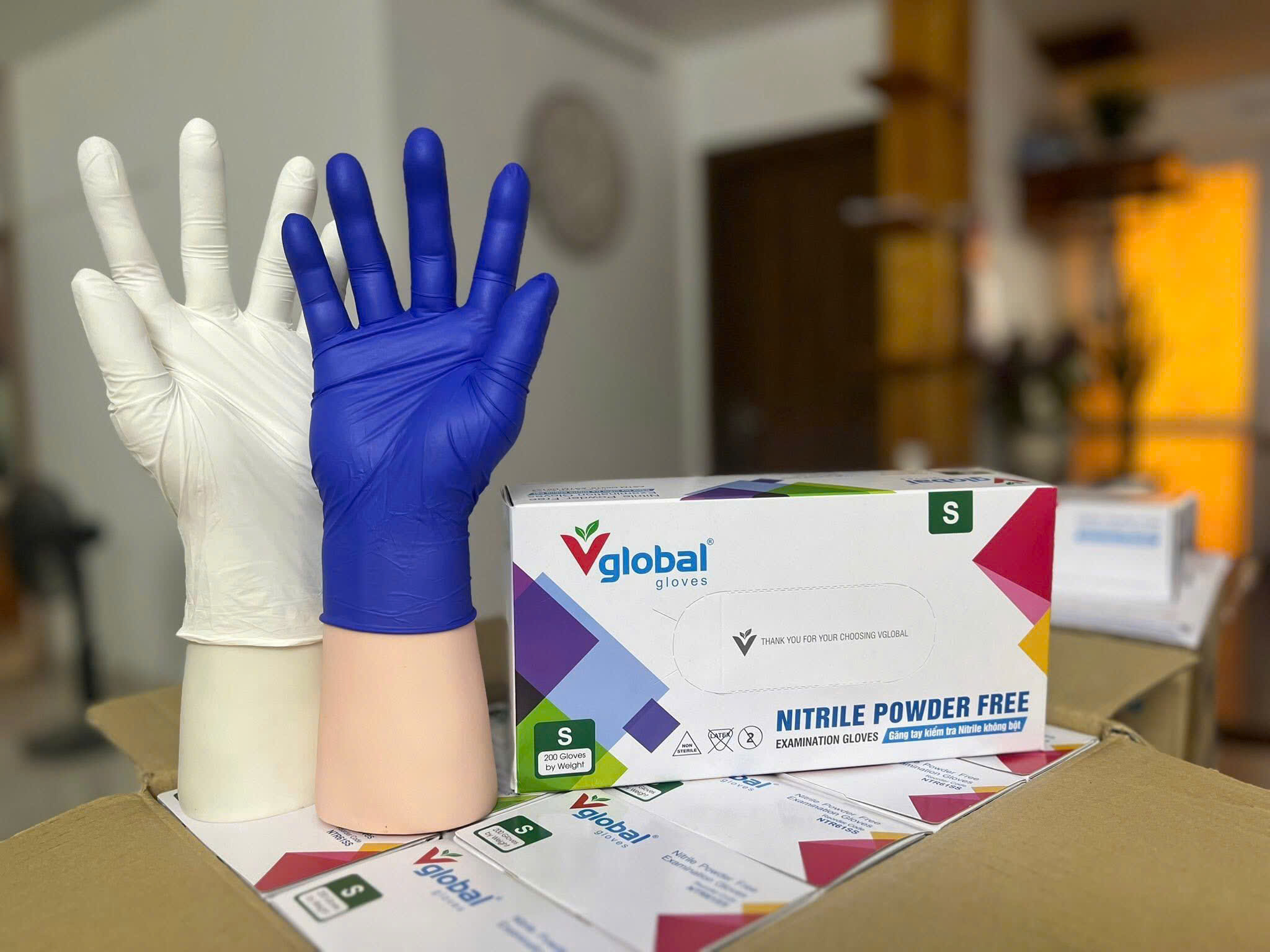 Găng tay cao su y tế không bột Nitrile Vglobal gloves 100 cái
