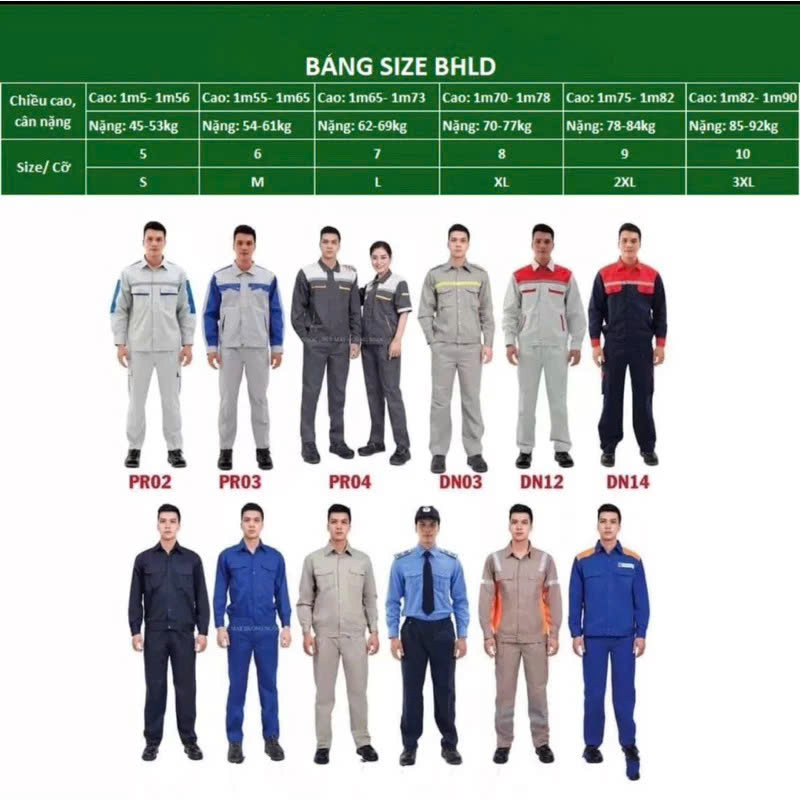 - Size: từ 5 đến 10 phù hợp với tất cả các công nhân, kỹ sư Việt Nam